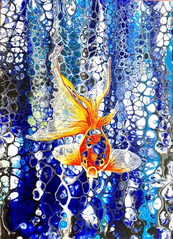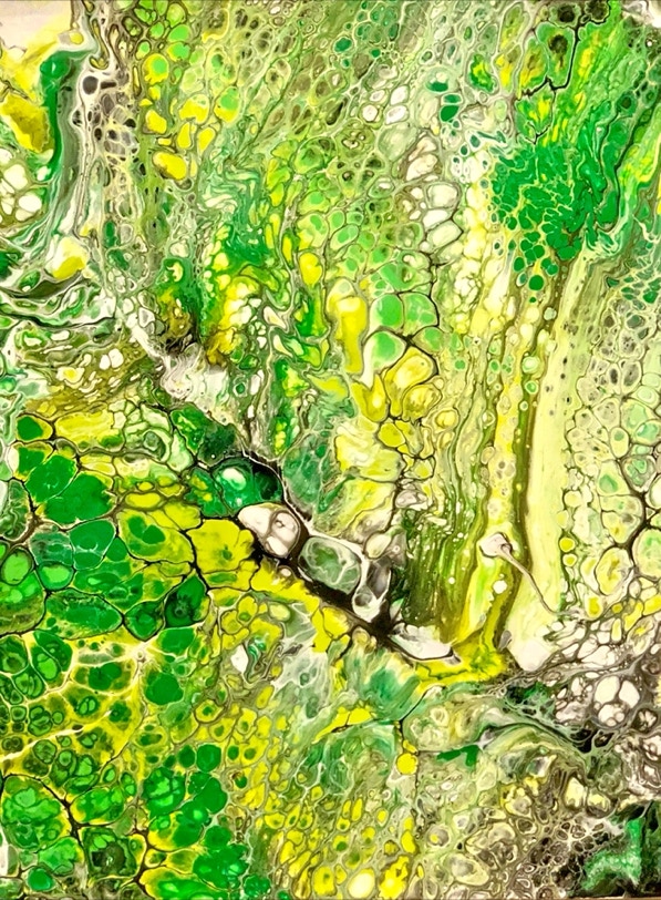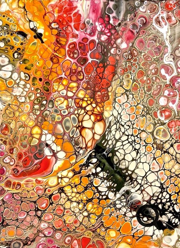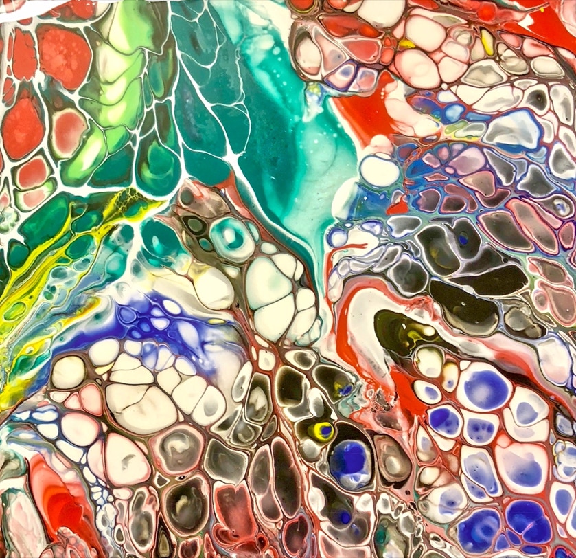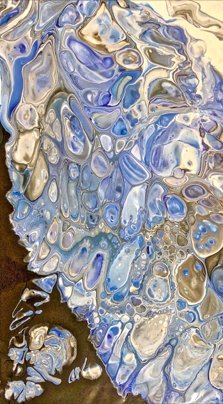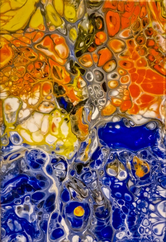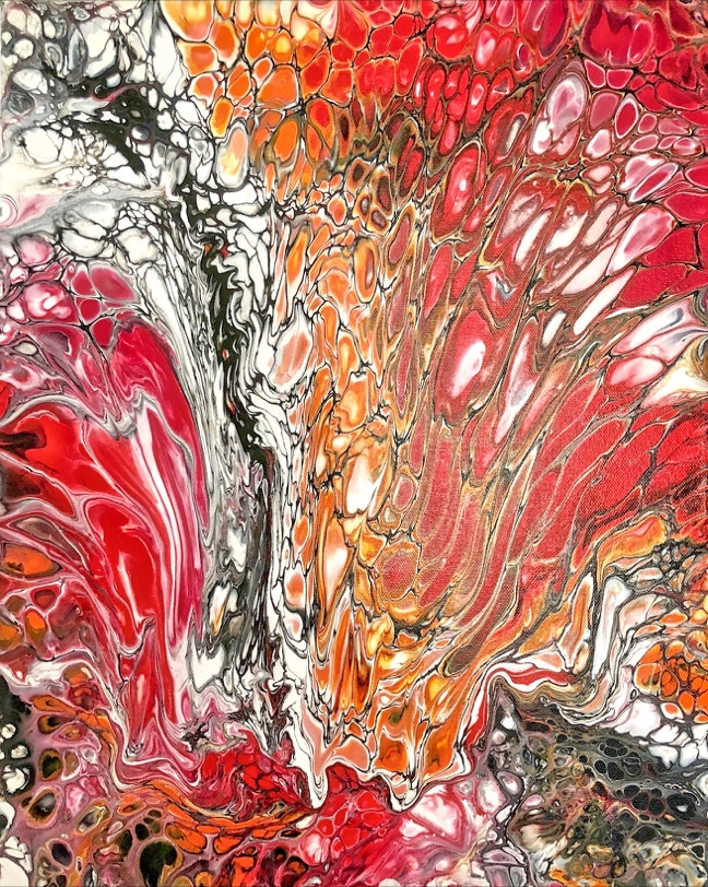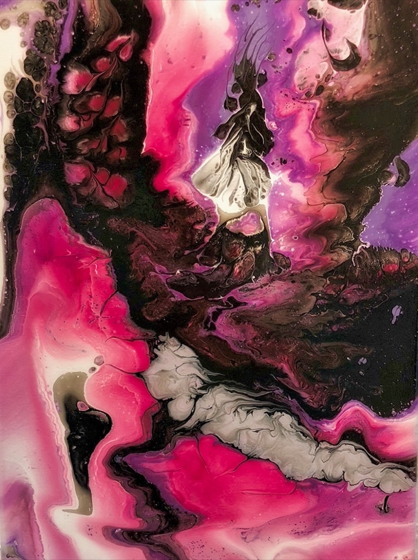 „Fluid Painting“ und 2020 auf „Acryl Abstrakt“ durch einen Kurs bei Melanie Geis, gestoßen.