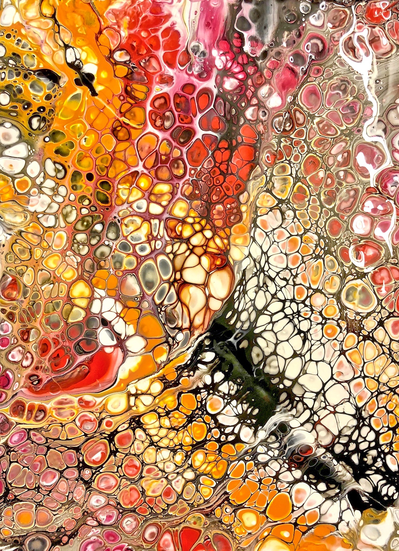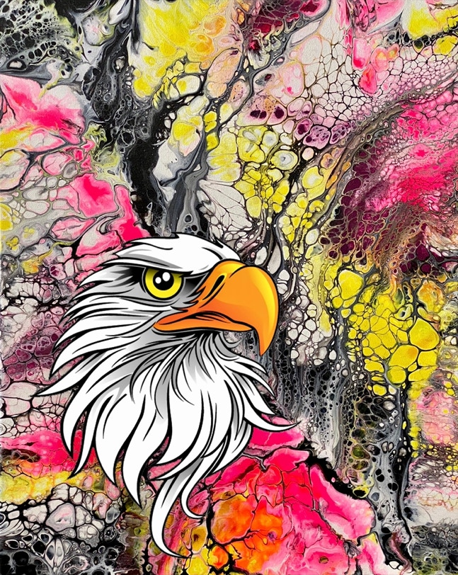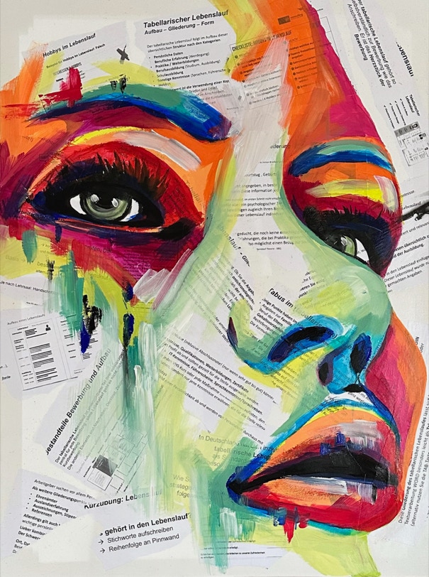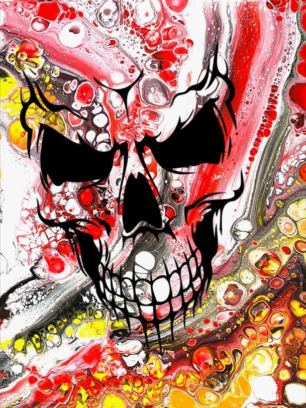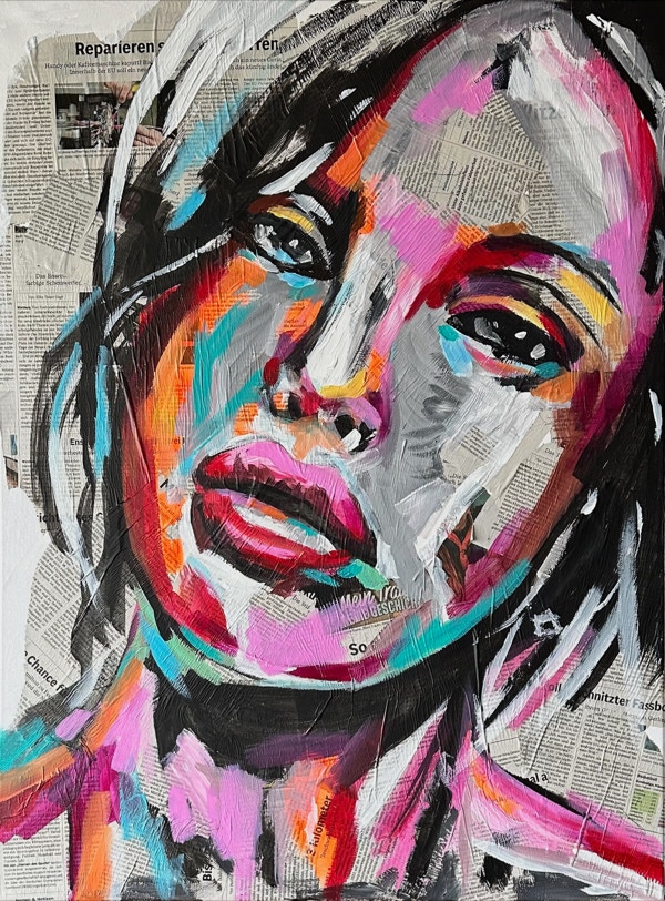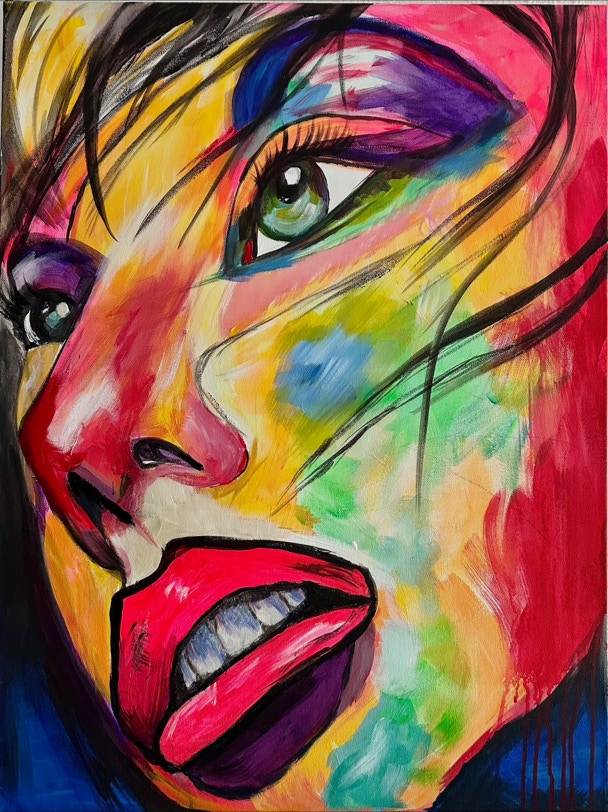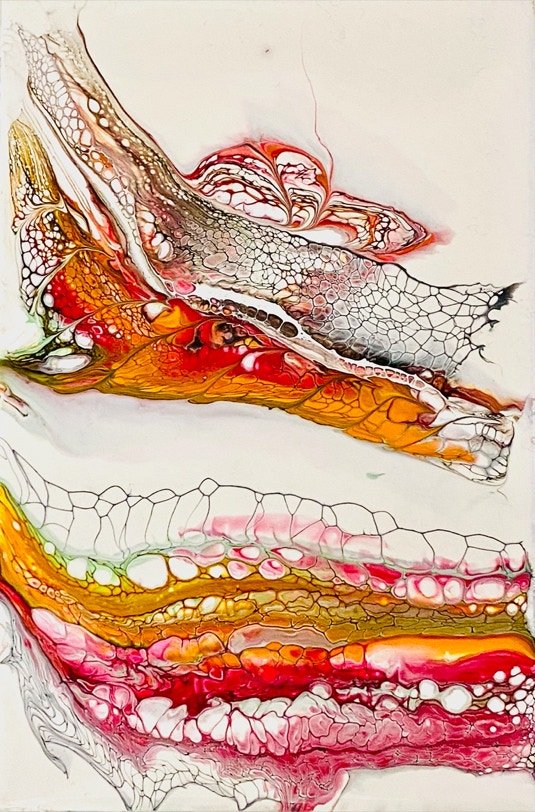 „Fluid Painting“ und 2020 auf „Acryl Abstrakt“ durch einen Kurs bei Melanie Geis, gestoßen.